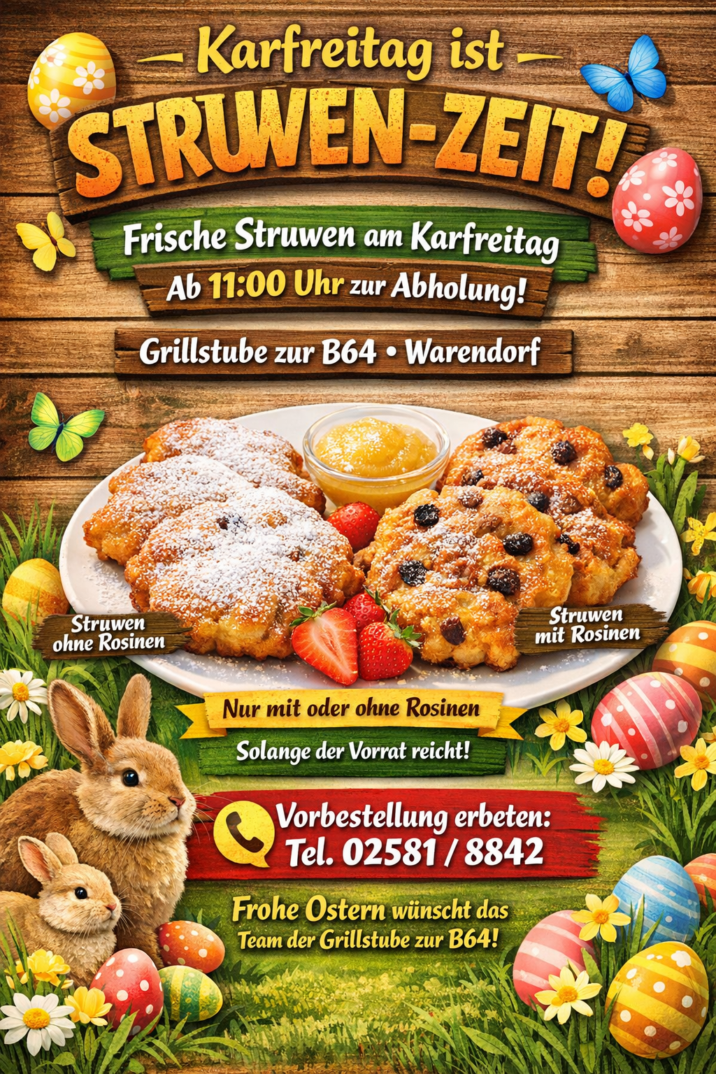 Vorbestellen können Sie gerne auch telefonisch, täglich schon ab 9.00 Uhr unter der Rufnummer: 02581-8842